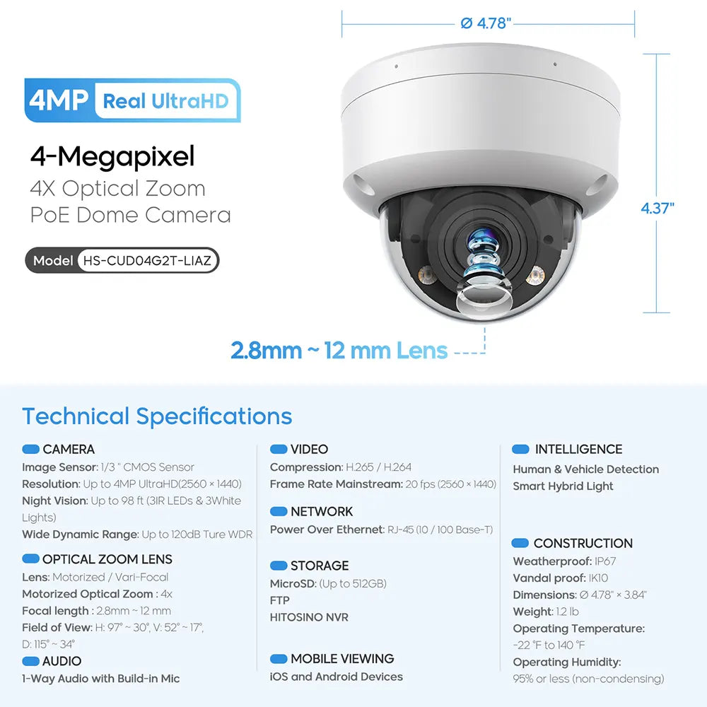 4MP Long Range Video Surveillance Varifocal Camera | HS-CUD04G2T-LIAZ