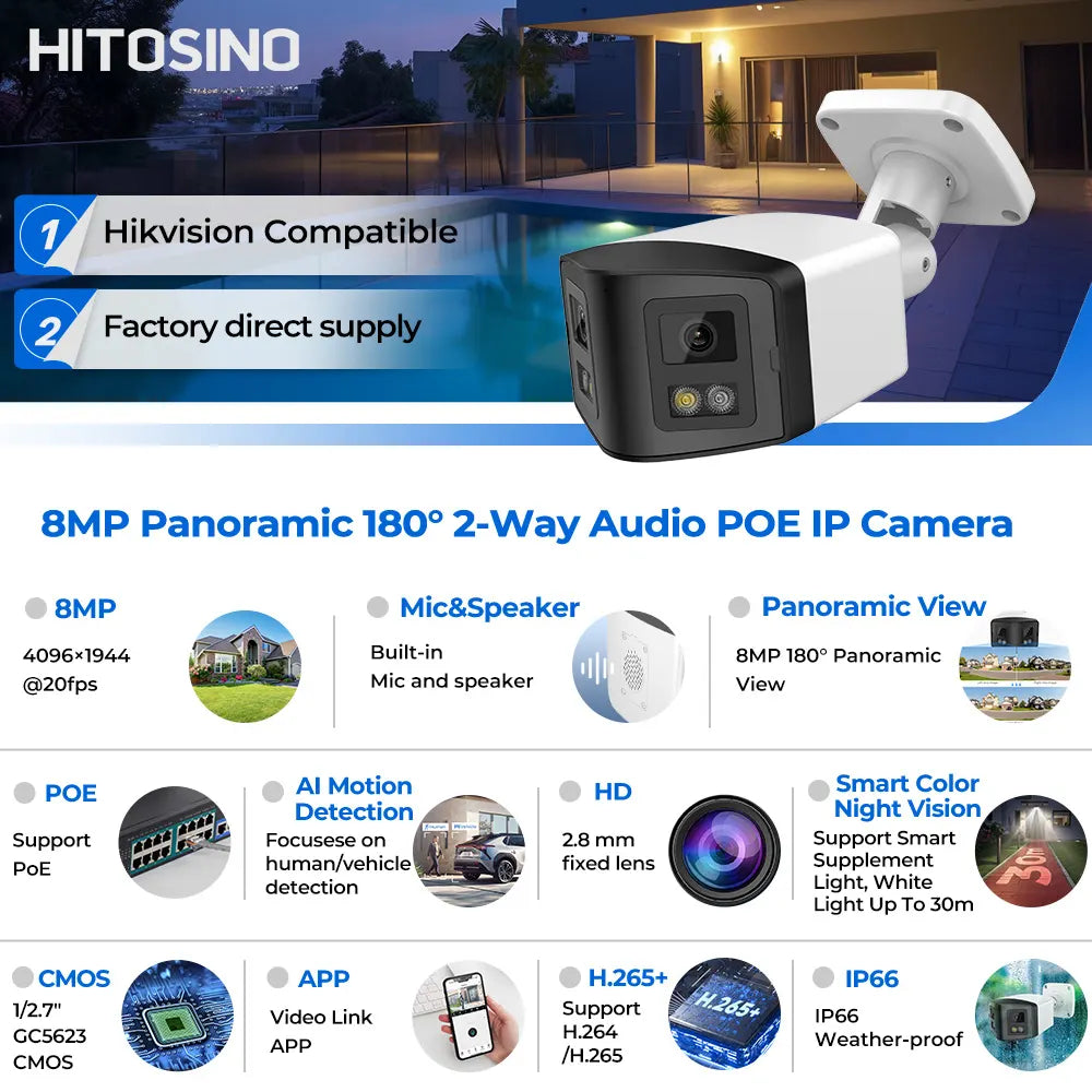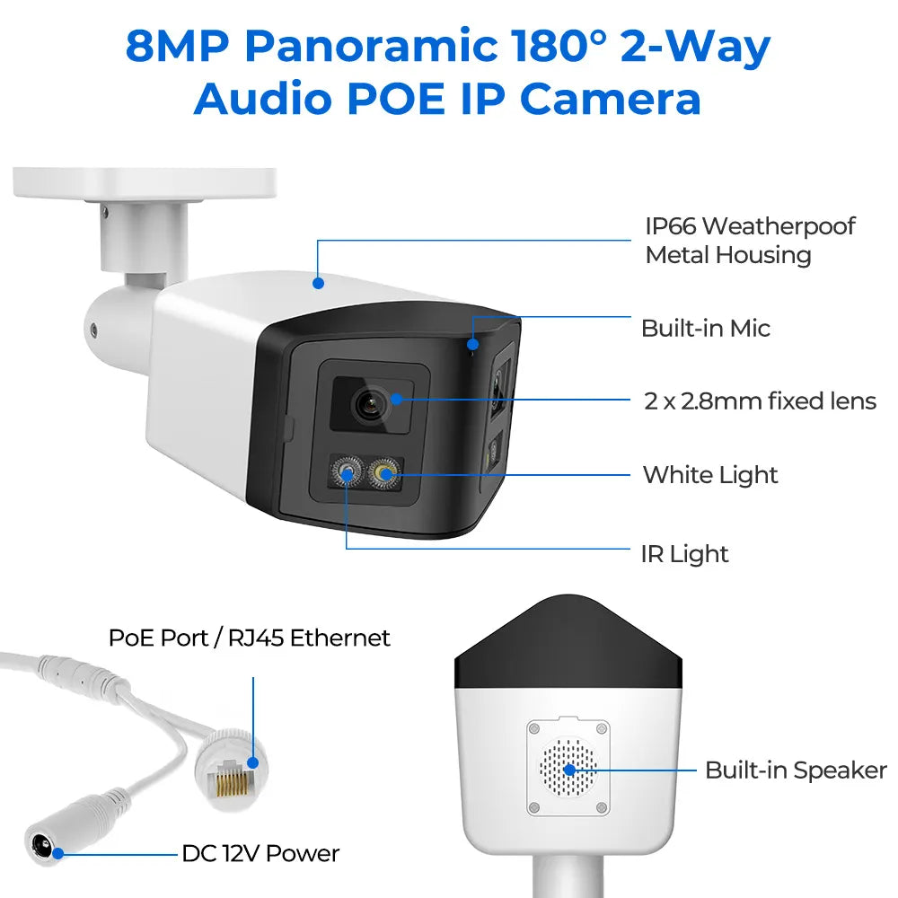 - 8MP 180° Panoramic view