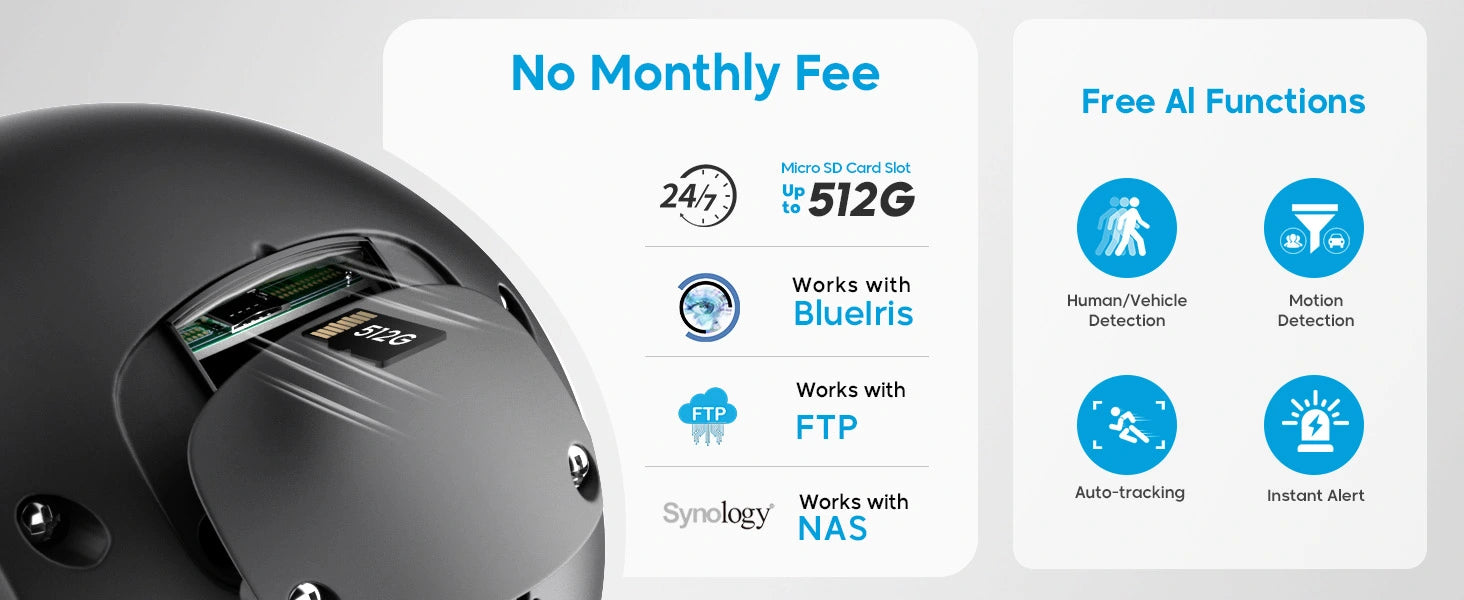 • With 6 Pcs IR LEDs, it provides crisp night vision up to 100 meters (165ft), ensuring long distance security around the clock.